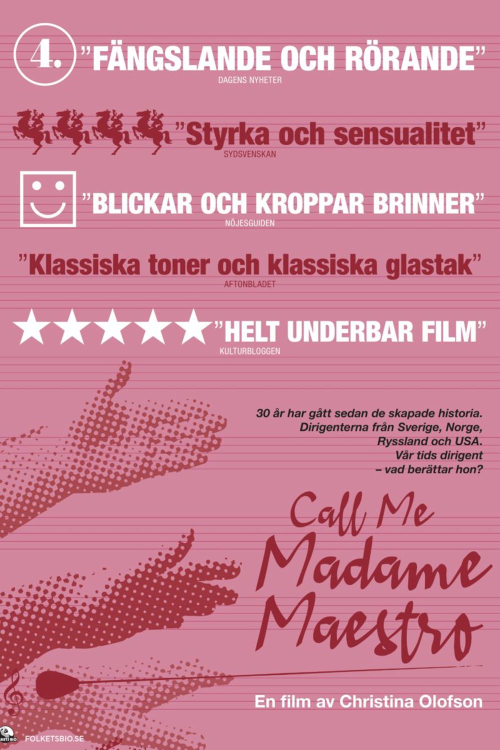 JoAnn Falletta på Bio Drakstaden! För 30 år sedan mötte regissören Christina Olofson dirigenter från Sverige, Norge, Ryssland och USA. Kvinnor som skapade historia. Nu är det dags att återvända.